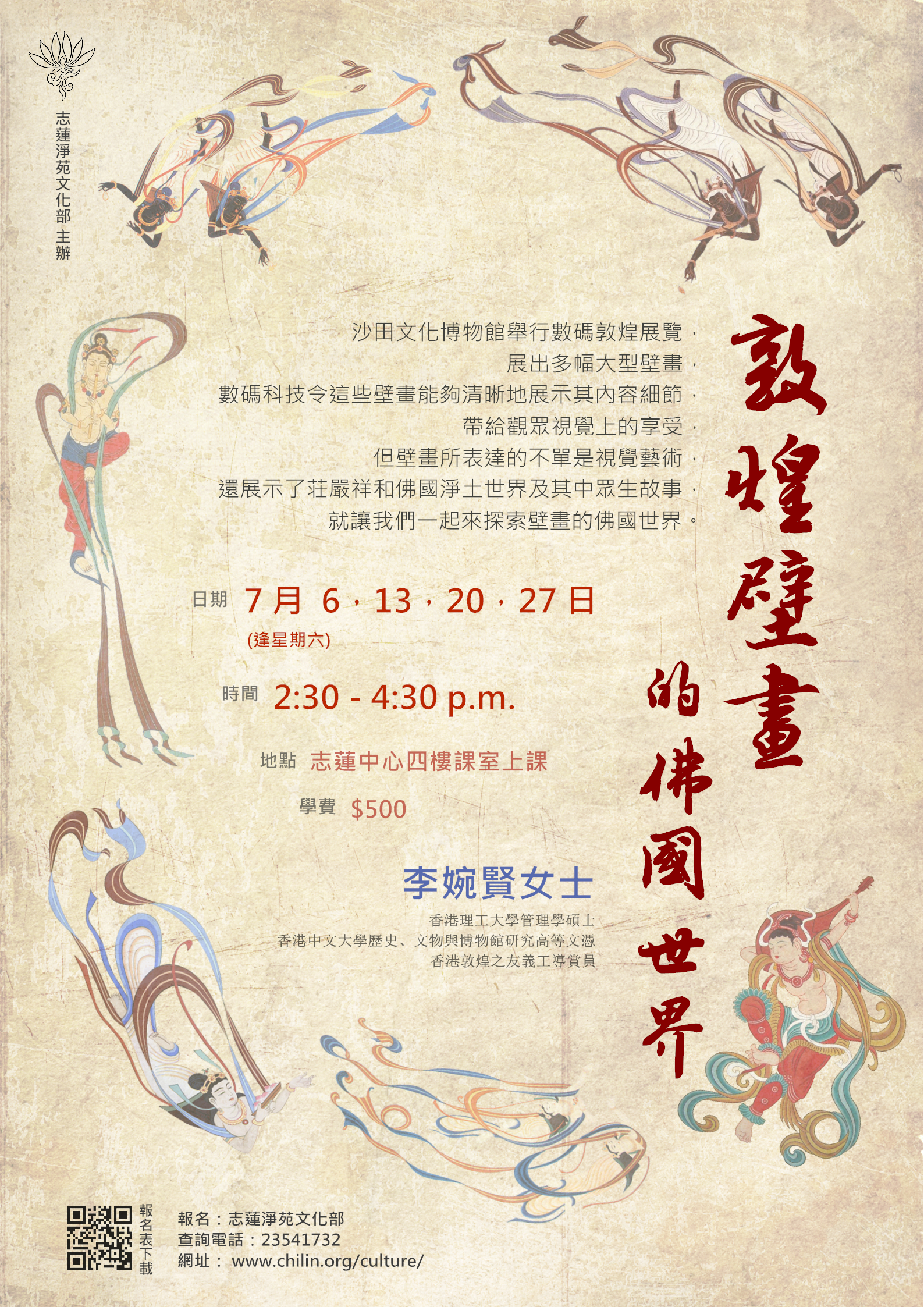沙田文化博物館舉行數碼敦煌展覽,展出多幅大型壁畫,數碼科技令這些壁畫能夠清晰地展示其內容細節,帶給觀眾視覺上的享受,但壁畫所表達的不單是視覺藝術,還展示了荘嚴祥和佛國淨土世界及其中眾生故事,就讓我們一起來探索壁畫的佛國世界。