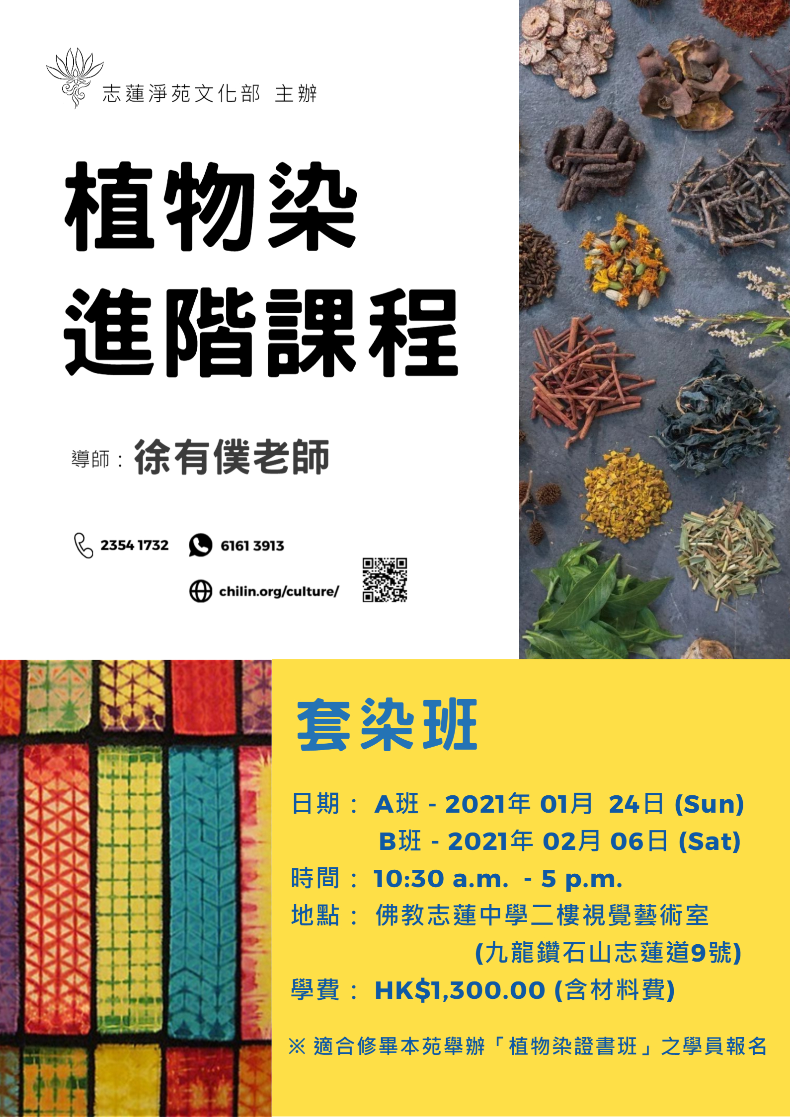 ※※※ 課程適合修畢本苑舉辦「植物染證書班」之學員報名 ※※※