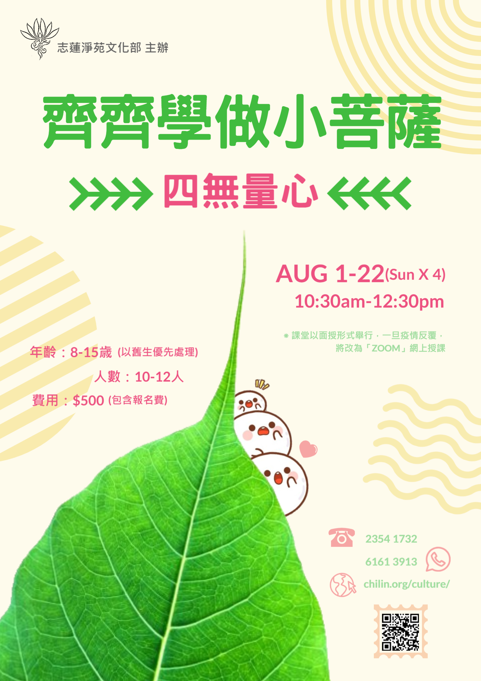 本課程透過故事、影片、遊戲、禪修、小手工等活動教導孩子認識及體驗此人類心靈瑰寶。