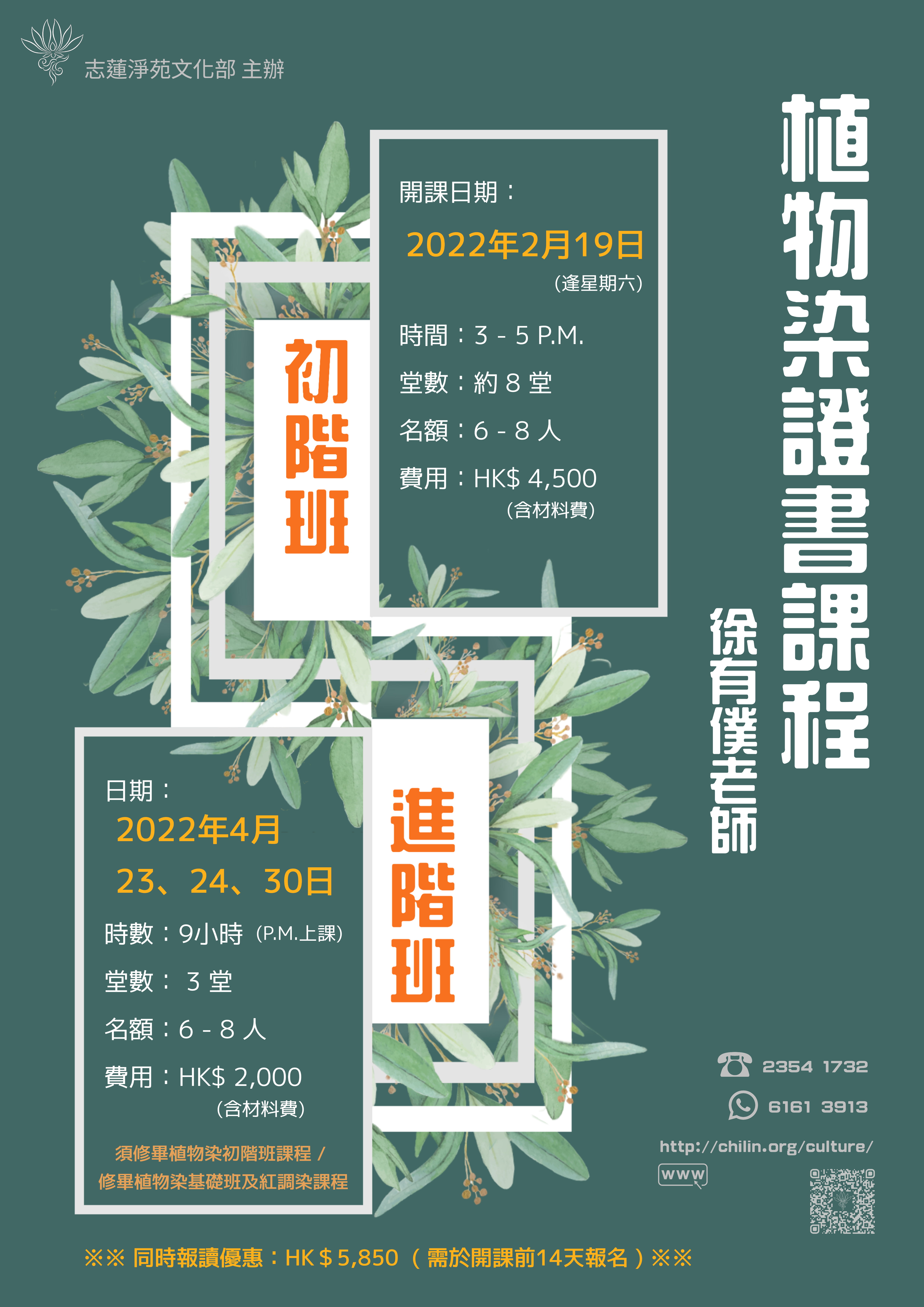 完成植物染初階班課程經考核可獲得植物染初階班證書。
