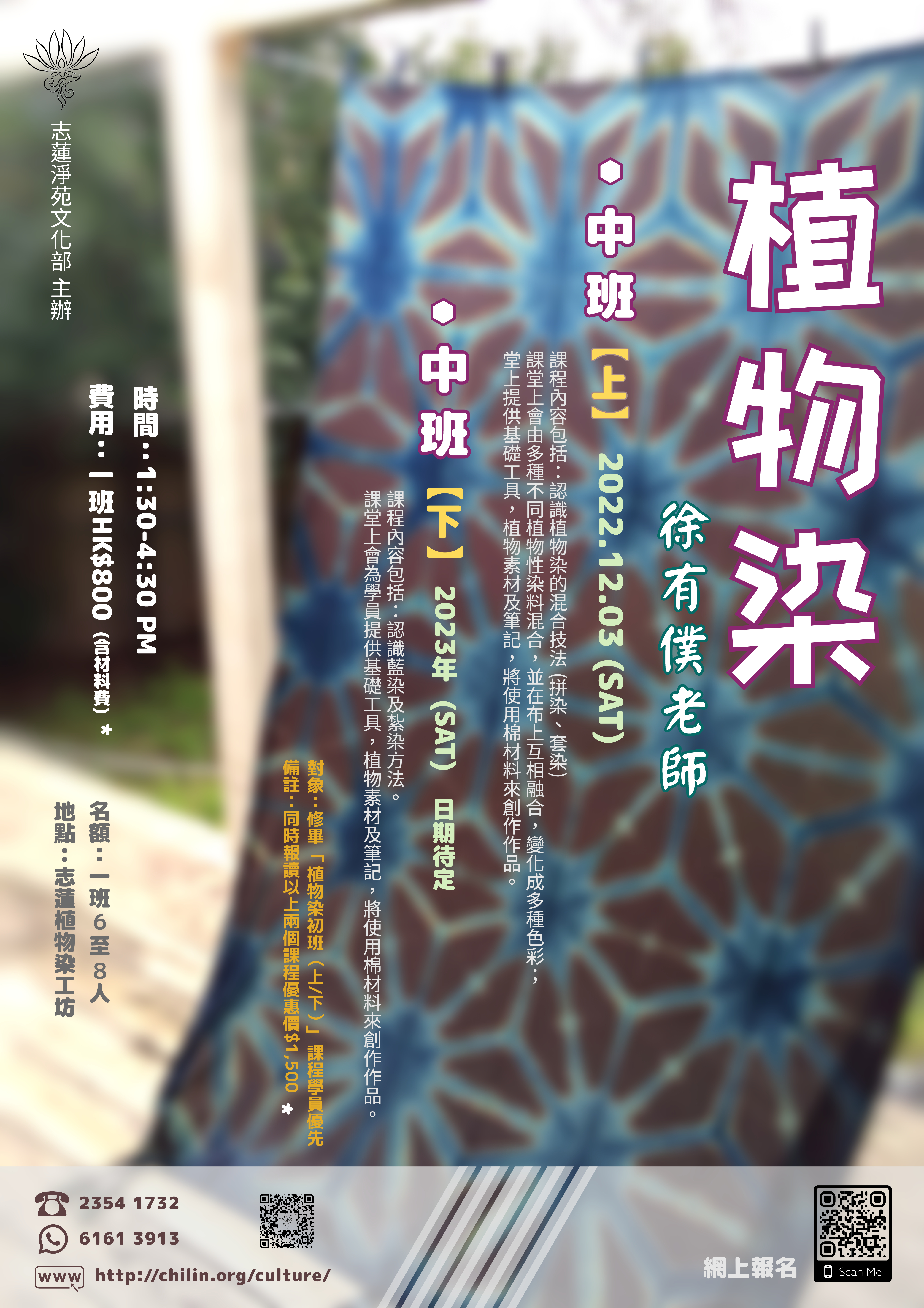 課程對象:修畢「植物染初班(上/下)」 或「紅調染系列」課程學員優先