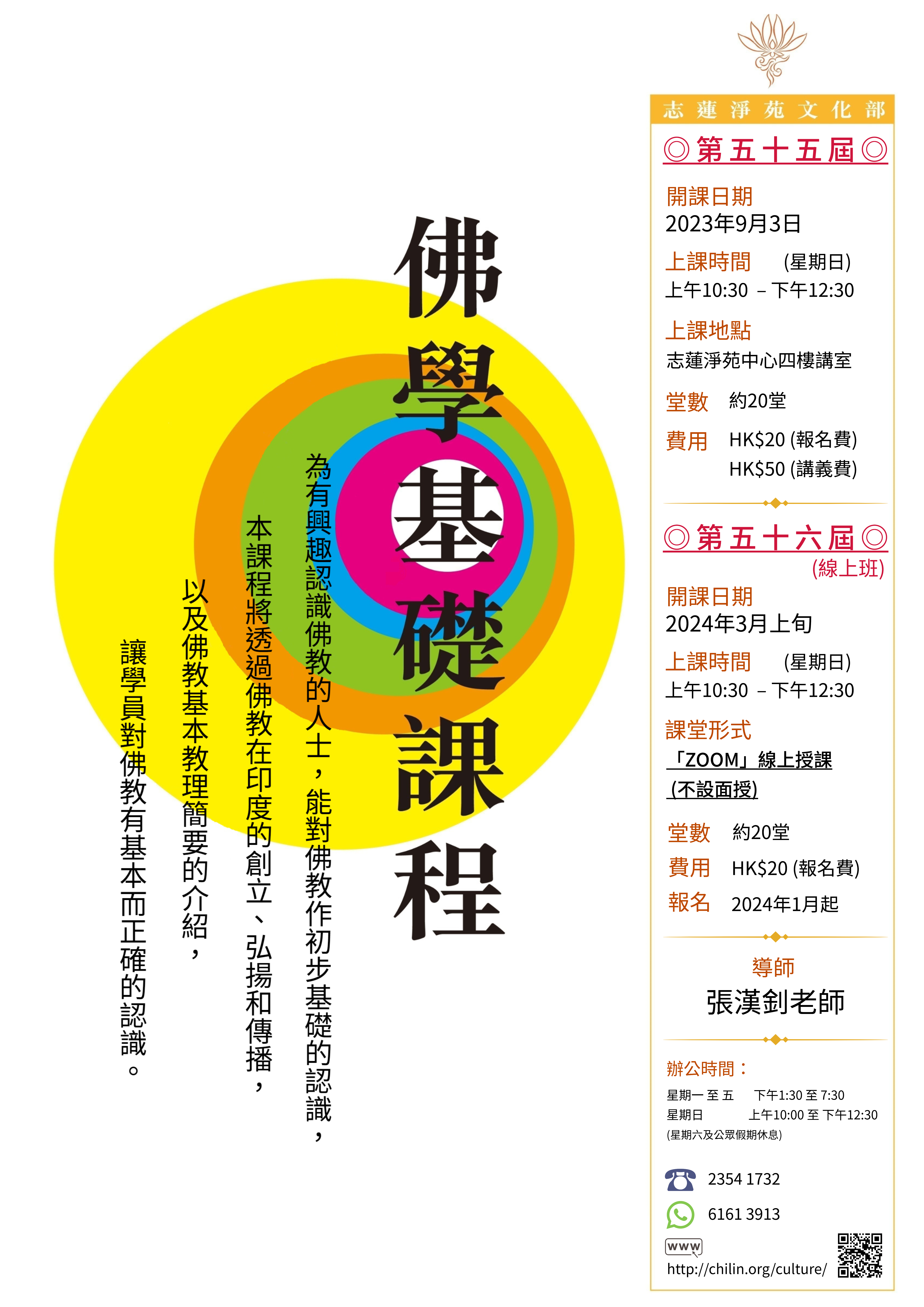 佛學基礎課程第五十六屆(線上班)將於2024年1月起接受報名。