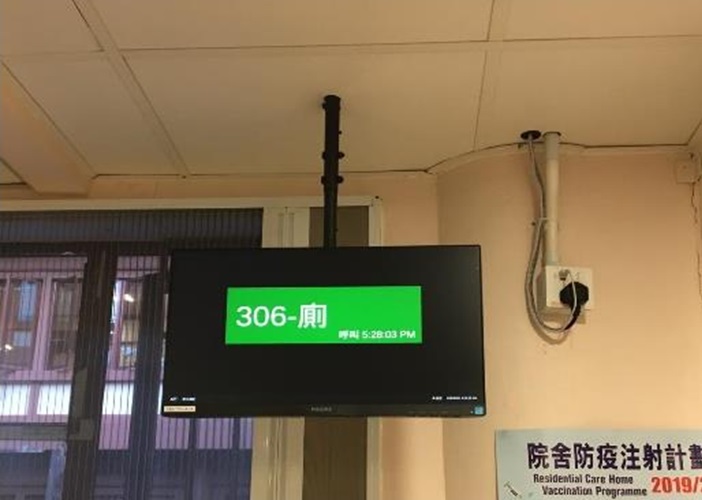 為更緊密關注院友的緊急需要,本院於2020年1月進行求救鐘系統優化工程,於各樓層增設電子螢幕及加強對講機功能。當院友按下求救鐘時,電子螢幕會顯示及讀出語句說明按鐘位置;而對講機會同時則讀出提示語句。本院於2至4樓位置合共加裝8個電子螢幕及增設對講機功能,螢幕分別2樓1個;3樓3個及4樓4個,而系統會配合對講機頻道。系統已於2020年2月下旬順利完成安裝。經過一段時間使用後,樓層反映系統服務設計良好,有便能夠即時收到院友狀況,作出及時應對。- 更換安老院升降機及加裝電子屏幕
