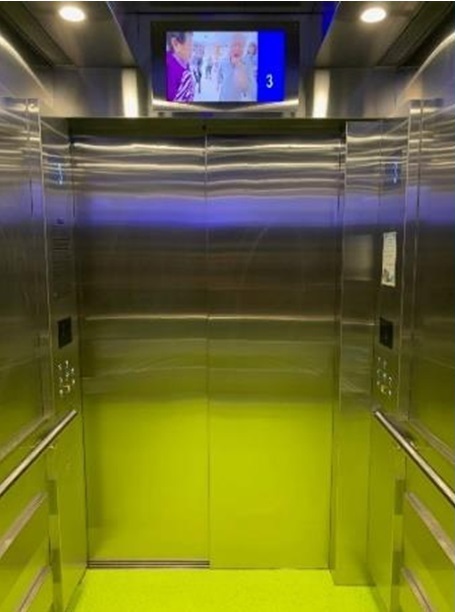 本院於2019年8月19日至2020年5月18日期間更換兩台載客升降機(L1、L2)。兩台載客升降機已分別於2019年12月9日及2020年5月18日投入服務,新機提升了運輸速度,由原來每秒1.4米提升至現時每秒1.75米,有效應付院內頻繁的使用量。而且,升降機(L1及L2)內亦加裝電子螢幕,現時會連同各樓層電子屏幕列出每日餐單、小組活動、衛生資訊、院舍通告、讚賞信及溫馨提示等,以便院友能夠獲得即時資訊。機廂配置三邊扶手,地板則採用防跣物料,保障使用者安全。此外,機廂採用淺綠色地板,加強對比度,讓使用者更容易辨認所在區域。而每個機箱亦新增了兩個資訊顯示屏,加強使用者對院舍服務的認識。