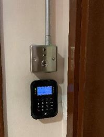 為加強防遊走系統的措施,本院計劃於17個位置加裝門禁及密碼鎖系統於有需要之出入口,以確保院友不慎離開院舍範圍。首次本院安排承辦商分別在2樓安裝3套及3樓安裝4套門撳系統,第二次則在2樓安裝1套、3樓安裝3套及4樓安裝6套門撳系統,位置分佈以後樓梯為主。而設計方面,緊急開門掣會安裝門的上方,以防止院友能按掣隨處可出。首次工程已於2020年8月7日展開, 並於2020年10月中旬順利完成。門撳系統於2020年11月2日正式啟用。而第二次門撳系統安裝已於2021年2月上旬起施工並於2021年3月完成。