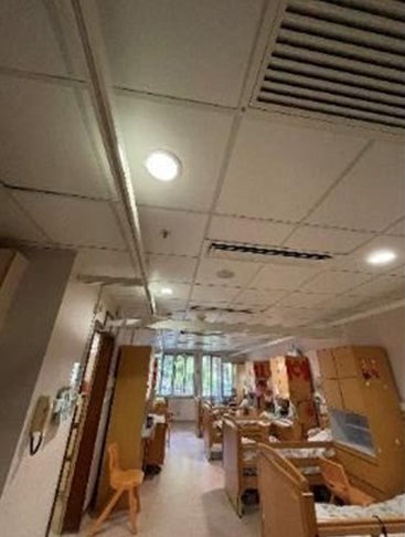 另外,院舍天井下的雨水渠亦有明顯老化,如遇下雨時會令渠下位置的香積廚糧油倉漏水,為防止漏水發生,本院已安排工程人員於2020年6月29日維修,順利將雨水渠更換。