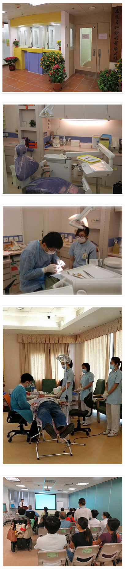 牙科診所積極關注長者的牙齒健康及口腔衛生,並採用「社區為本」的服務模式,曾為超過貳仟位長者提供免費檢查,簡單脫牙,補牙及洗牙等治療。同時,牙科診所醫生亦外展到社區中心主講口腔衛生講座及牙齒護理等,目的在加強社區長者對牙齒護理及口腔衛生等知識的預防工作。