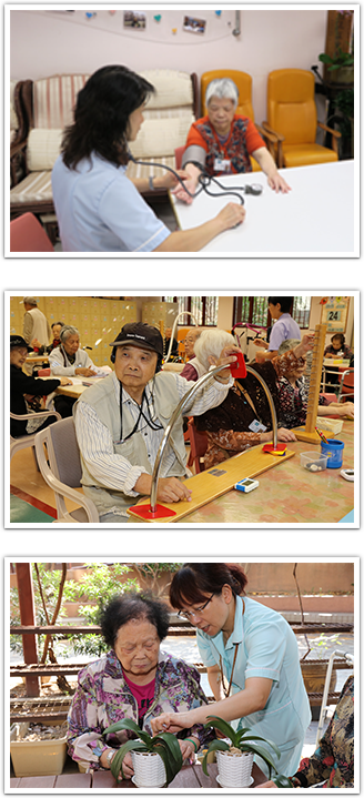 •中心設有物理治療師及職業治療師,因應長者的需要提供評估、復康及訓練計劃。