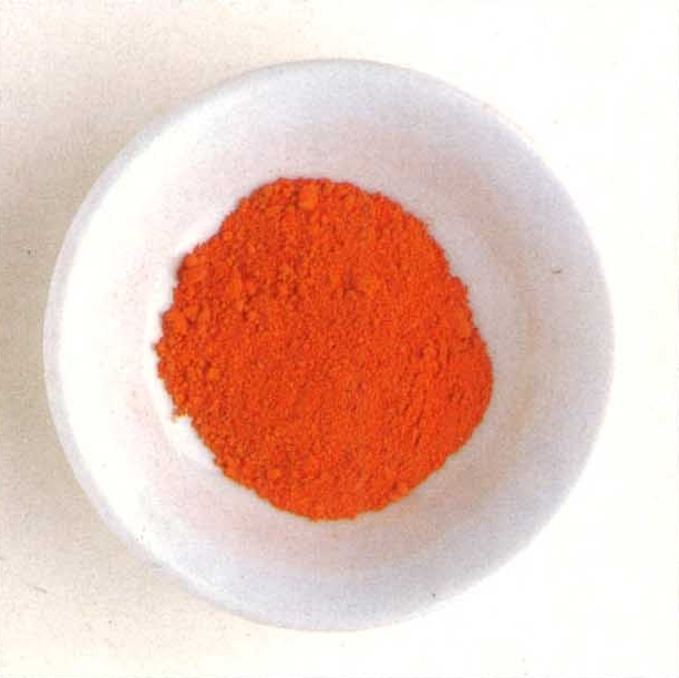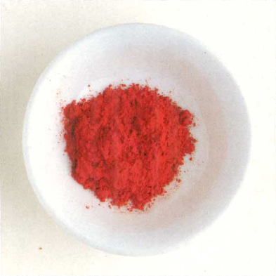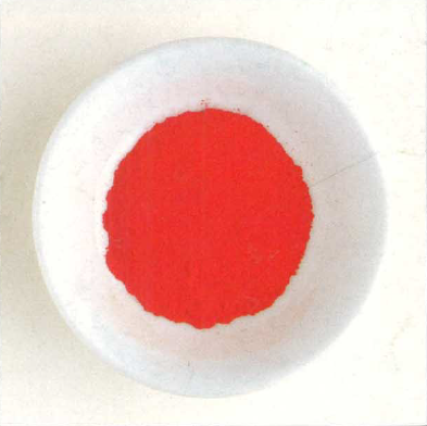 銀朱:又名紫粉霜或猩紅'是中國古代發明最早的化學顏料之一,以水銀和石亭脂製煉而成,主要原產地爲福建漳州。據《本草綱目》載:「昔人謂水銀出於丹砂,鎔化還復爲朱者,即此也,名亦由此。」