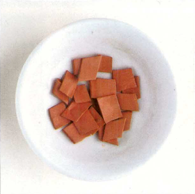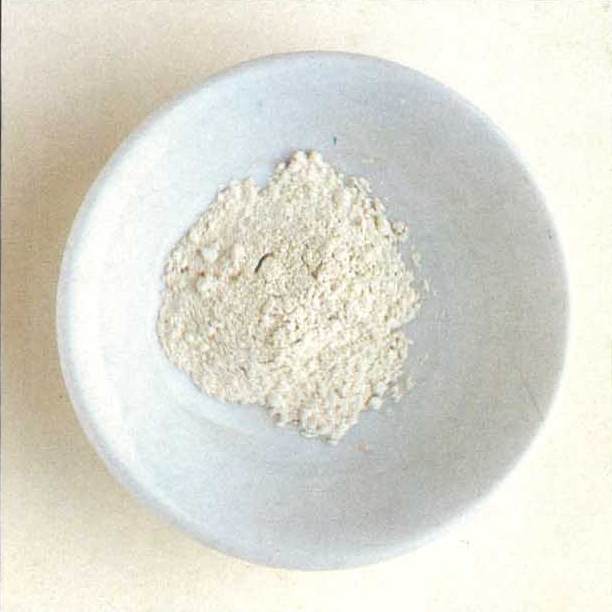 「錠粉」:先壓細,再過細蘿,倒入瓦盆內,加入膠液,用力攪撑,使結成團塊狀,再搓成細條,放入淸水浸泡。使用前需攪匂。