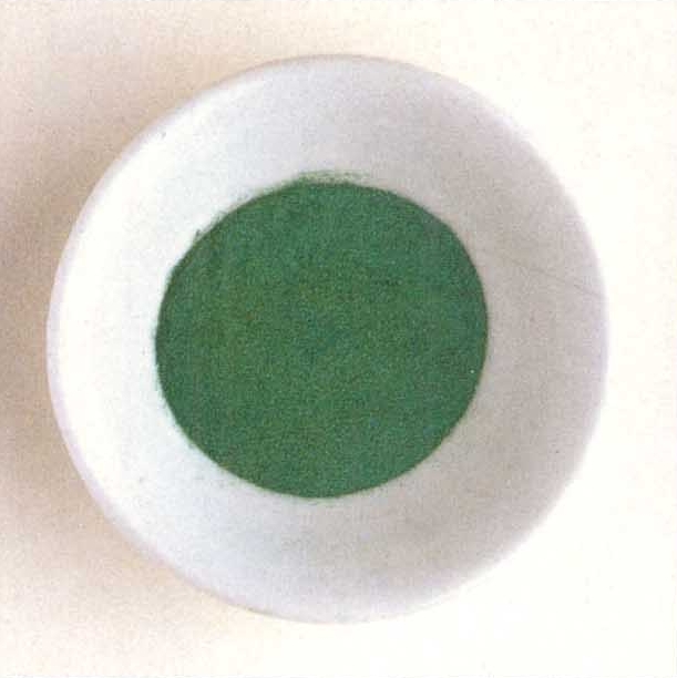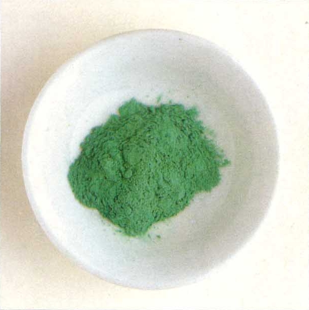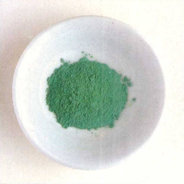 洋綠:化學顏料,色能持久。以手試之,如捻細沙,用開水澈後,待沈澱而水無色。