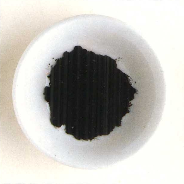 黑石脂:《中國畫顏色的硏究》載:黑石脂,又名石墨,主要成分是炭,入口黏舌,與煤不同。古代畫家把它硏細,用它畫鬚眉。