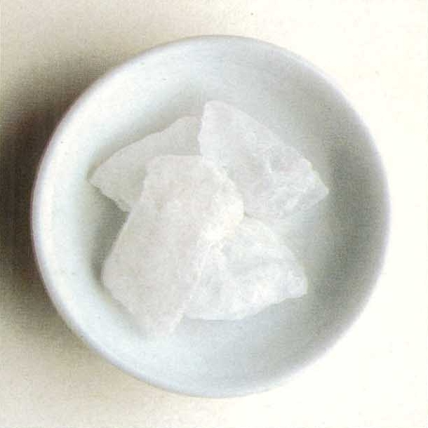 明礬:又名白礬,由礬石煎煉而成,無色,半透明,有玻璃光澤,質輙性脆。其水溶液帶澀味,主要產於安徽省廬江。