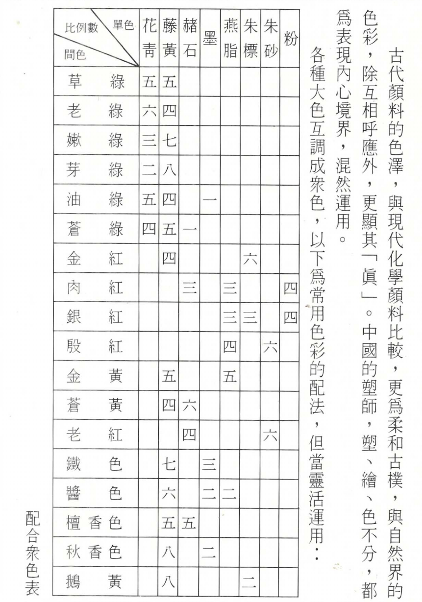 山西,保存著北魏以來的珍貴彩塑,歷千百載自然界的變動和侵蝕,原貌仍存,顏料的品質實是重要因素之一。古代常用顏料,分列如下: