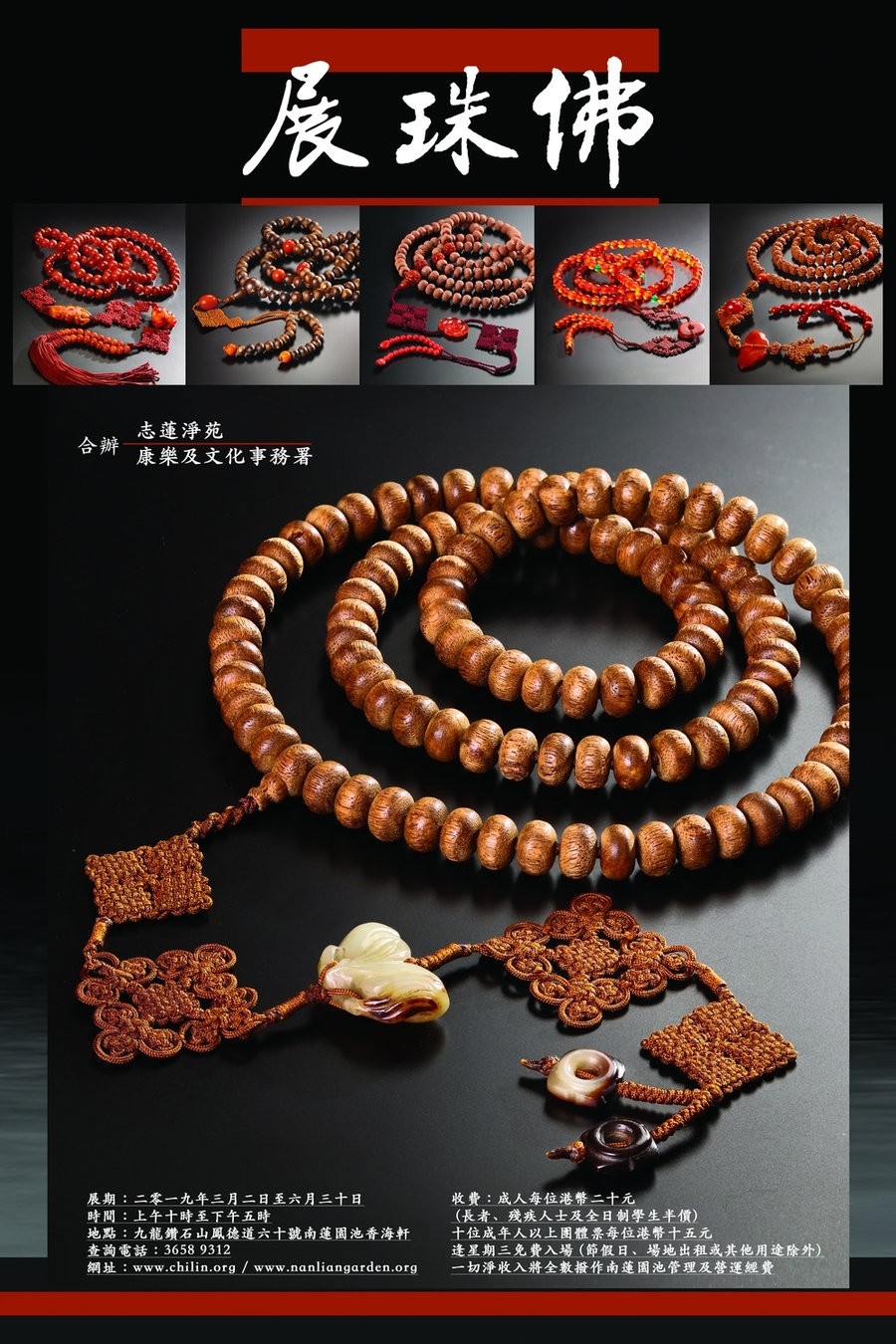 展覽簡介:佛珠 ,在佛教歷史上本稱念珠,又稱數珠、誦珠、咒珠,由於是念佛持咒時用以記數的隨身法具,故也常稱佛珠。念珠的使用由古印度人鬟條纒身為飾的風尚演變而來...